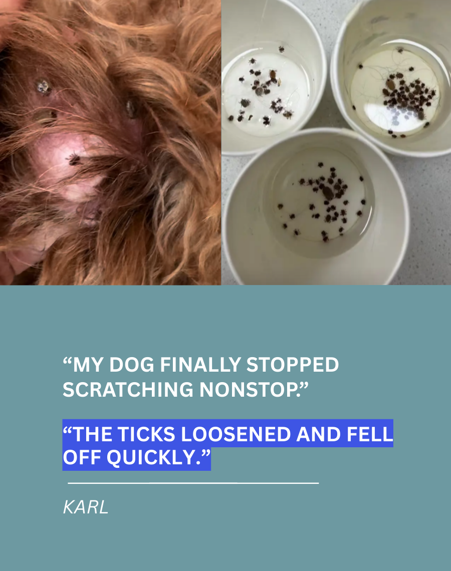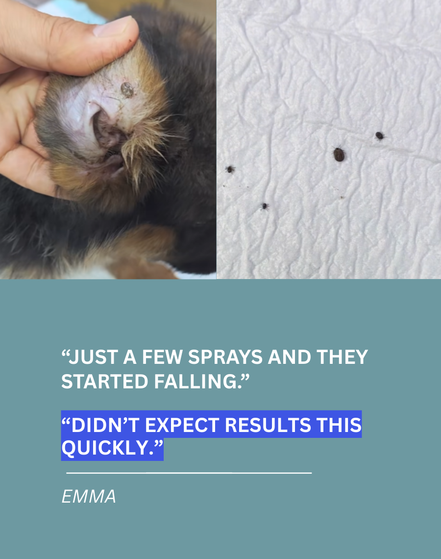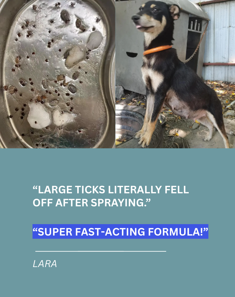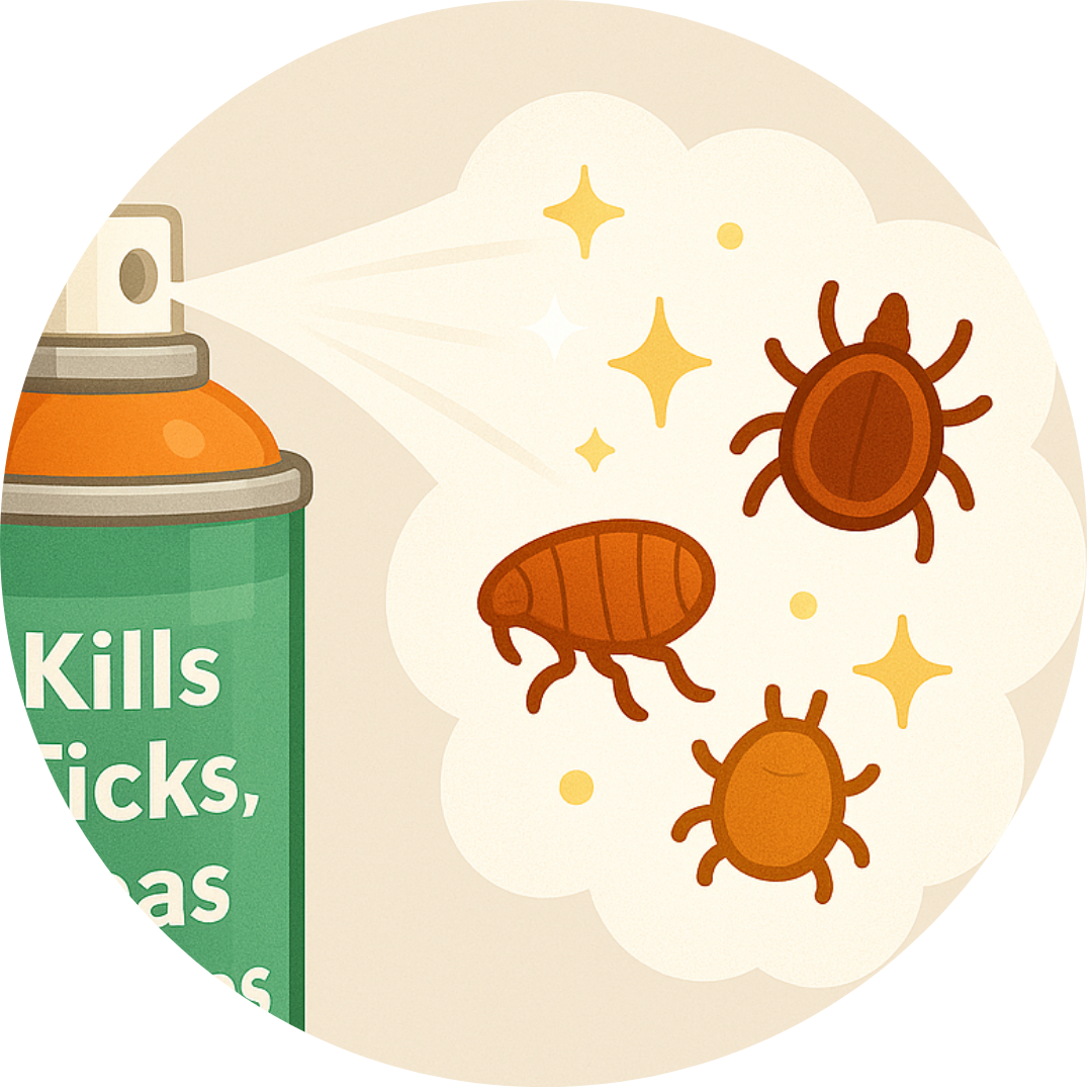Kills Ticks, Fleas & Mites on Contact